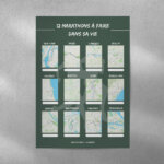 ✅ Papier Haute Qualité – Présenté en format A3 sur du papier épais de 250g. ✅ Prêt à l'Aventure – Un feutre fourni pour noter les dates, les temps de votre marathon etc... ✅ Durabilité Assurée – Un film protecteur sur l'affiche pour garantir longévité et éclat. Toutes nos affiches papiers sont conçues en France, dans le Rhône Alpes. Nous faisons imprimer nos commandes dans nos locaux à Lyon. Voici les 12 marathons présents sur cette affiche : *Les cadres et autres décorations visibles sur nos photos sont exclus. Les couleurs sur votre écran peuvent varier un peu des couleurs réelles imprimées.Témoignages