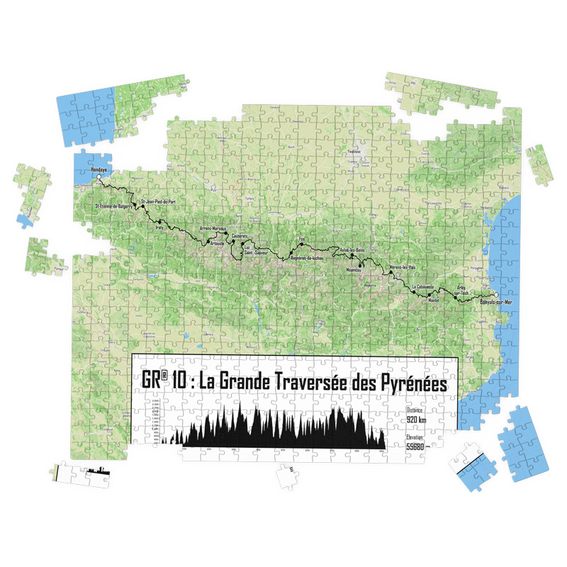 Vous avez parcouru le mythique GR®10, aussi appelé la Grande Traversée des Pyrénées ? Ou peut-être, cherchez-vous le cadeau parfait pour un ami randonneur qui a emprunté ce sentier emblématique ? Notre puzzle de 500 ou 1000 pièces est l’occasion idéale de revivre cette aventure, pièce après pièce.
