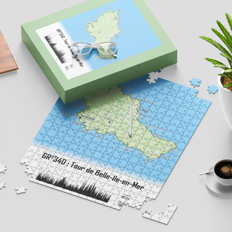 Vous avez parcouru le mythique GR®340, aussi appelé Tour de Belle Île en Mer ? Ou peut-être, cherchez-vous le cadeau parfait pour un ami randonneur qui a emprunté ce sentier emblématique ? Notre puzzle de 500 ou 1000 pièces est l’occasion idéale de revivre cette aventure, pièce après pièce.